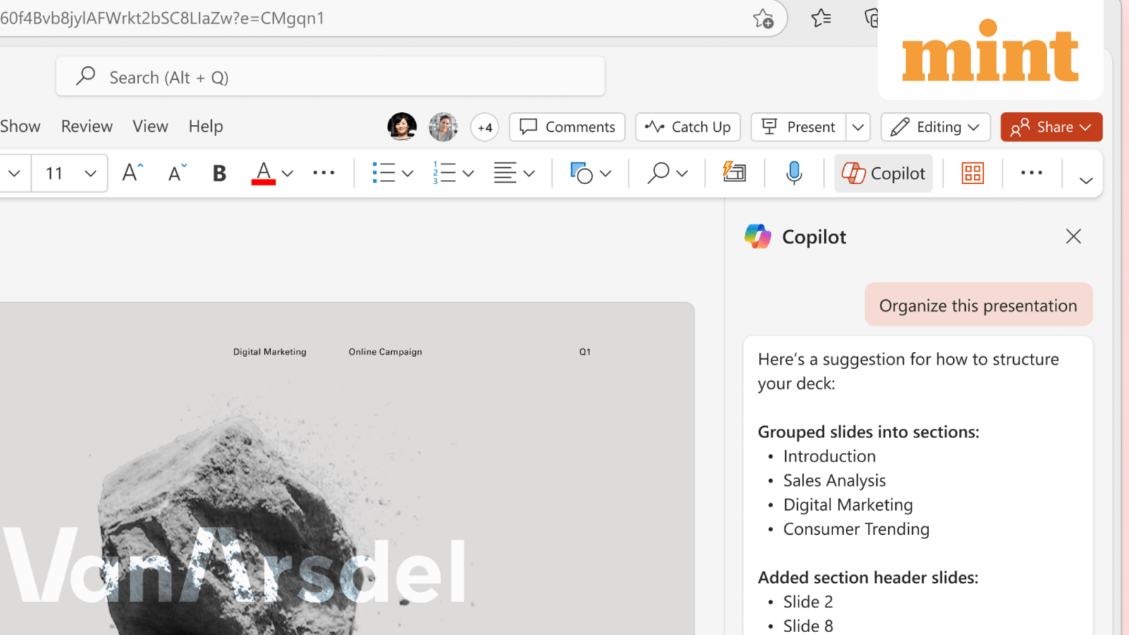 • Blank page → First draft: They load their corporate template, open the Claude sidebar, and type: “Build an 8-slide…